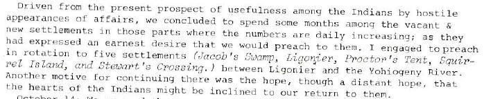 the Fort Pitt area to preach to the Indians, who were not receptive to his