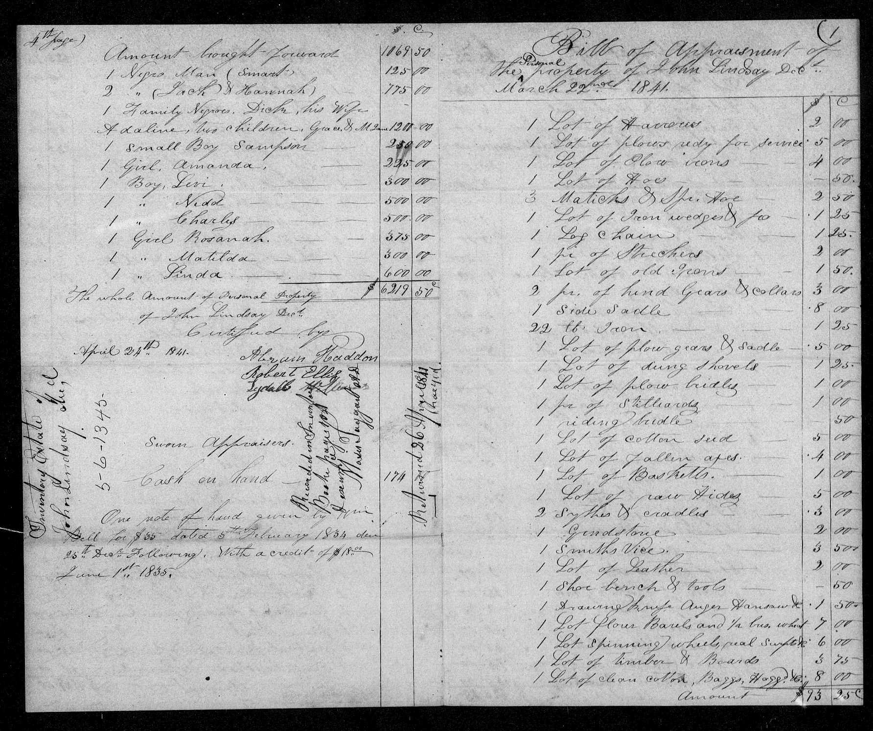 John Lindsay estate, 1841. Click on an image to see a larger view.