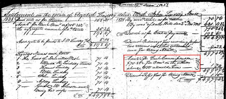 estate. The probate papers of Elizabeth Lindsey provide proof that John Lindsey of Bush River was her son. In September of 1828, Gerrard W. Johnson, the husband of Elizabeth's daughter, Mary Lindsey Johnson, petitioned the court to require John Lindsey, the administrator of the estate, to make a distribution of shares to the legatees. The petition listed the names of Elizabeth Lindsey's children, and John Lindsey was included as one of her children. Below is a transcription of the 1828 petition (from pages 19 and 20 of Elizabeth Lindsey's probate record):