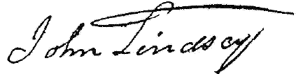John Lindsey, Elizabeth's son, signed the document as John Lindsey B R (Bush River) the