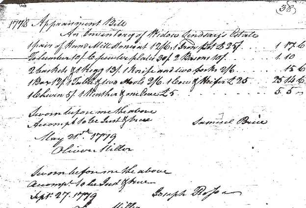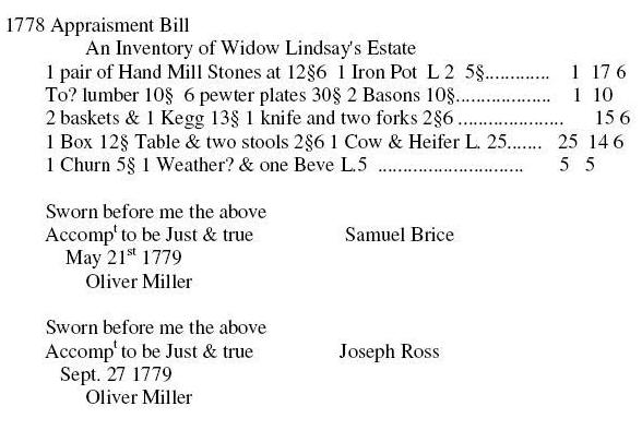 inventory was for a Widow Lindsey, and not William Lindsey.